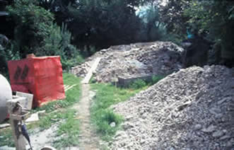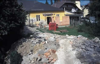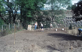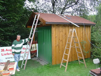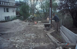 Durch die Errichtung einer Stützmauer zum Mühlbach, konnte die benutzbare Fläche des Gartens wesentlich vergrössert werden.Durch diese Maßnahme war es auch möglich eine Terasse anzulegen. Weiters konnte 2005 eine Gerätehütte in Eigenregie aufgestellt werden .