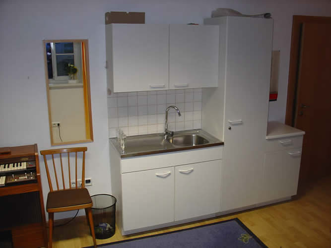 Der Raum ist im Parterre, Rollstuhlgerecht, eignet sich für Gesundenberatung, Unterricht und ist mit Kalt- und Warmwasser ausgestattet.