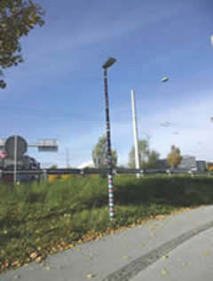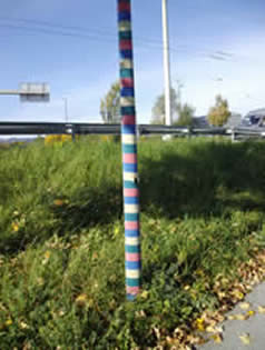 Am Karlsbaderweiher 20. 12. 2013 Erdweingranter - Auffahrt Lexengasse Am Autobahn Kreisverkehr Lichtmast mit Strickverkleidung ein lustiger Mitmensch !