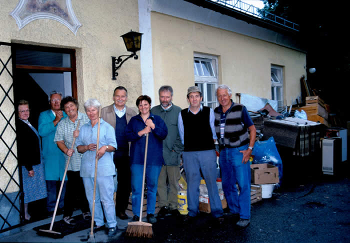 Freiwillige Helfer sind angetreten zur Entrümpelung des Hauses - Maria Wallner, Ernst u, Hedi Bugaschitz, Hedi Leiminger, Hans Hefner, Hermi Pann, Erhard Petzel, Hans Krinner u. Rudi Kainz